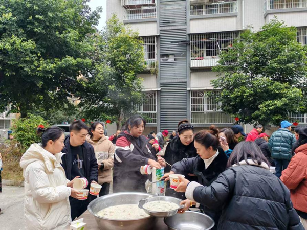 社区工作人员和小区志愿者们精心准备腊八粥食材,现场齐心协力熬制腊八粥,热气腾腾的腊八粥出锅后,组织居民一起享用。大家手捧腊八粥,边吃边聊,分享生活点滴,在寒冬中感受到了社区浓浓的关怀与温暖,活动现场弥漫着温馨祥和的气息。