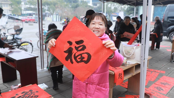 拿到心仪的春联和福字,大家的脸上都洋溢着喜悦的笑容,纷纷表示这样的活动不仅能增添节日氛围,还让他们感受到了传统文化的魅力。