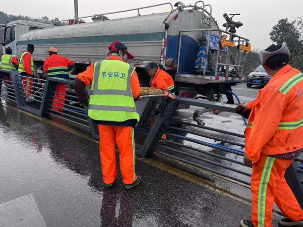 冲洗工作为期5天,区综合执法局每日调配2辆洒水车和10余名环卫工人,对城区主次干道的市政护栏进行冲洗和擦拭工作。他们不惧冬日寒冷,运用高压水枪、拖把、抹布等工具仔细冲洗护栏,普及万安路、纹江路、景乐路、凤雏路等城区各主次干道,全力清除护栏及花圃上积存的灰尘污渍。