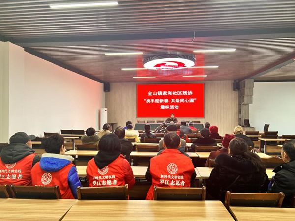 祥龙辞岁福泽厚,金蛇迎新瑞气盈。在新春佳节即将来临之际,为进一步关心关爱残疾人,保护残疾人合法权益。2025年1月22日,金山镇在家和社区开展了“携手迎新春、共绘同心圆”残疾人趣味游园活动,40余名残疾朋友参加。