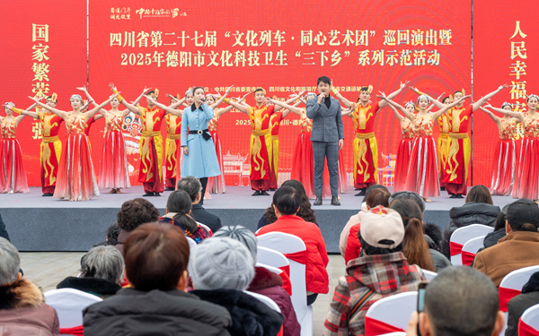 为加快推进乡村文化振兴,不断丰富人民群众精神文化生活,1月23日上午,罗江区八景苑广场举行了“四川省第二十七届文化列车·同心艺术团”巡回演出暨2025年德阳市文化科技卫生“三下乡”系列示范活动。