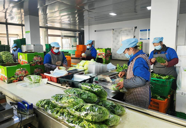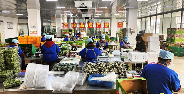在生产车间,挑选、称重、包装……工人们在二次挑选后,熟练地对蔬菜进行包装和装箱,确保能在最短时间内将蔬菜送往全国各地乃至海外市场。