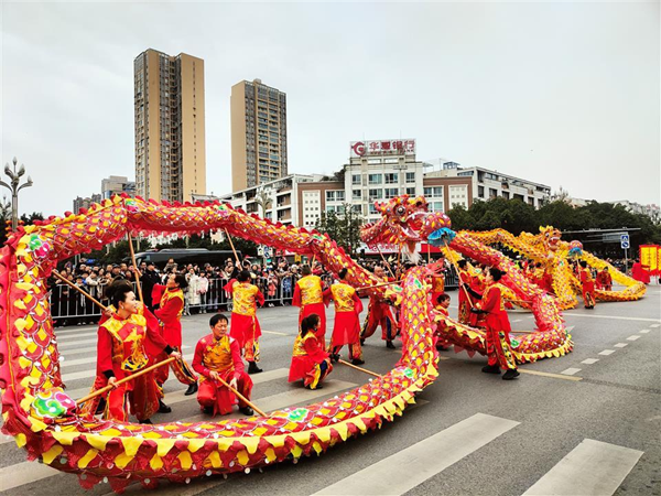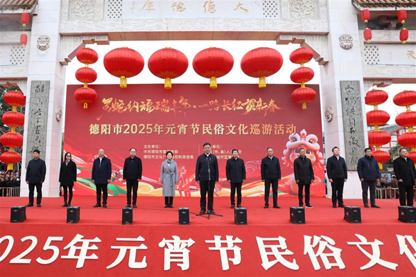 2月12日,“灵蛇纳福瑞丰年·一路长红贺新春”德阳市元宵节民俗文化巡游活动在钟鼓楼广场启幕。德阳各县市区800余人组成的民俗巡游队伍沿街表演,吸引数万市民游客驻足观看,为新春佳节增添浓郁年味。