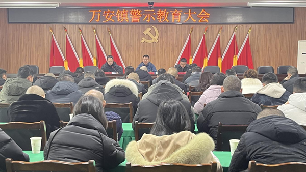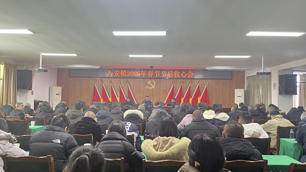 近日,万安镇召开春节节后收心会暨警示教育大会。在家班子成员,镇机关全体干部职工,各村(社区)党组织书记共90余人参加会议。